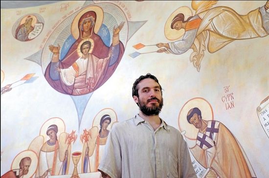 It’s a quiet summer morning at St. Cyprian of Carthage Orthodox Church on a country road in Midlothian. Seraphim O’Keefe, born Conor O’Keefe on Christmas Day in 1982, has been painting images on the church walls since 6 a.m. Because it is hot in the church, he is barefoot, which seems fitting. There is something saintly about this Richmond native, whose story is in some ways as dramatic as that of St. Jacob, the monk whose robe he is now painting.