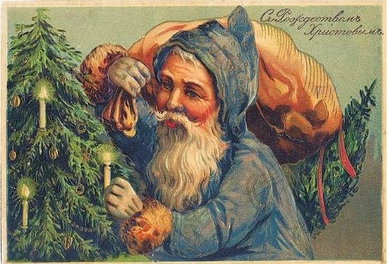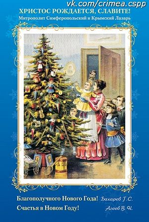 За образцы были взяты не "Санта Клаусы", а дореволюционные открытки из фондов Крымского этнографического музея и детские рисунки с выставки «От Святителя Николая к Крещению Господню», которая является совместным проектом епархии и музея, особо отмечают в епархии.