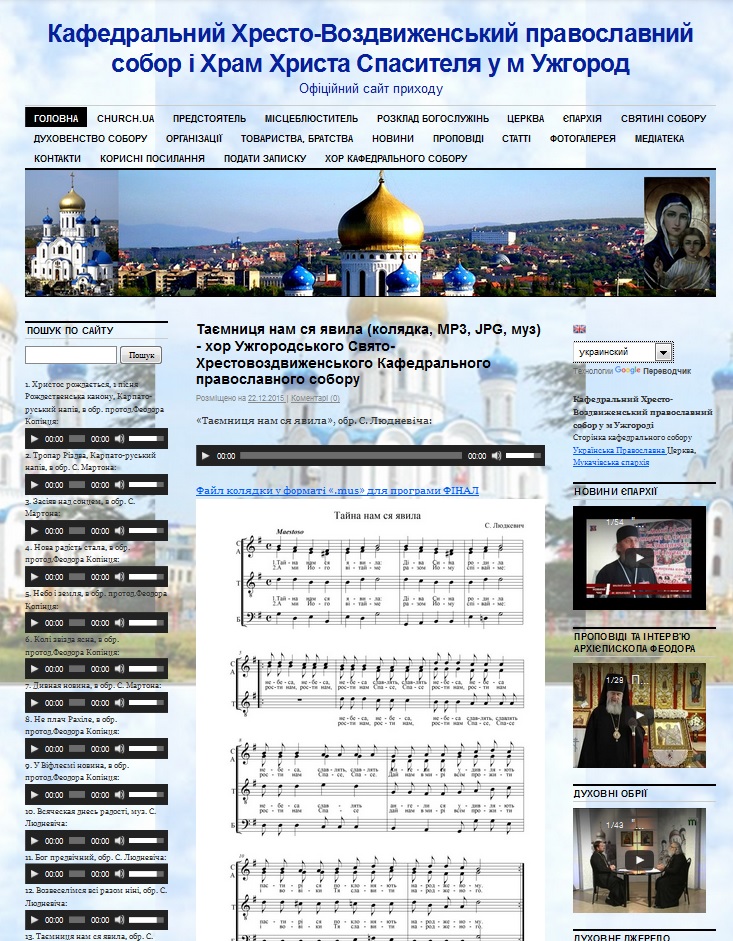 Прослушать, посмотреть и скачать все Рождественские песнопения (песнопения\mp3, ноты\ jpg, + mus\файл (Finale) можна на сайте Ужгородского Свято-Хрестовоздвиженского кафедрального собора http://ungsobor.church.ua.