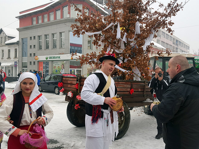 Окићени бадњак данас је на коњској запрези провезен кроз Петрово, а домаћини су га даривали вином, пешкирима, слаткишима и новцем. Бадњак ће бити наложен вечерас у порти Цркве Покрова Пресвете Богородице у Петрову, у предвечерје Божића.