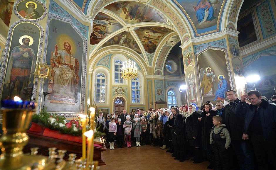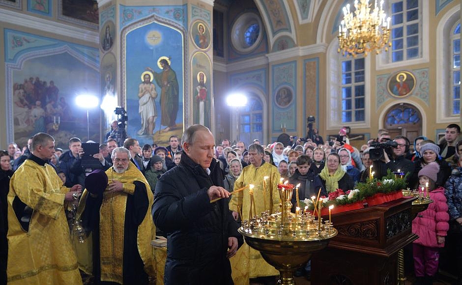 Глава государства присутствовал на Рождественском богослужении в храме Покрова Пресвятой Богородицы в селе Тургиново Тверской области, сообщает сайт Президента России. Вместе с Владимиром Путиным на Рождественской службе присутствовали ученики духовно-образовательного центра, открытого при храме.