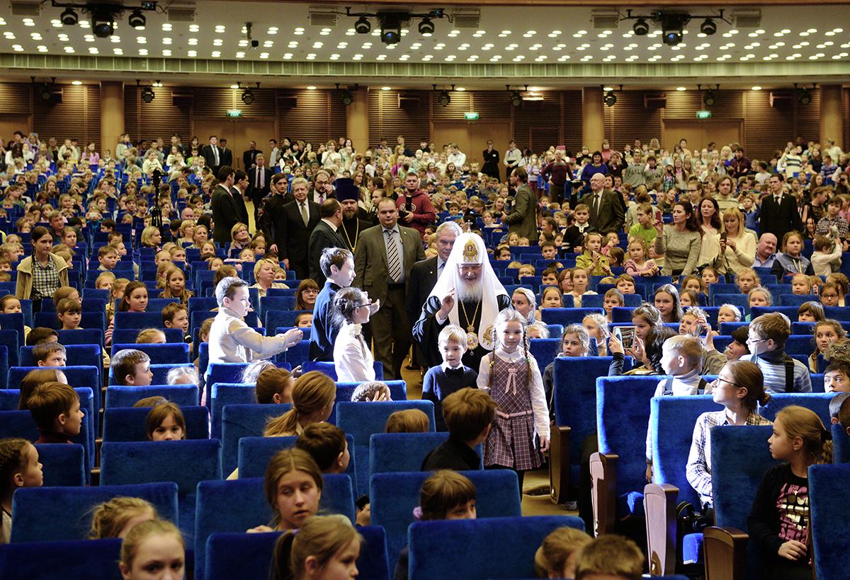 Предстоятель Русской Церкви поднялся на сцену и обратился к участникам Патриаршей елки с Первосвятительским словом.