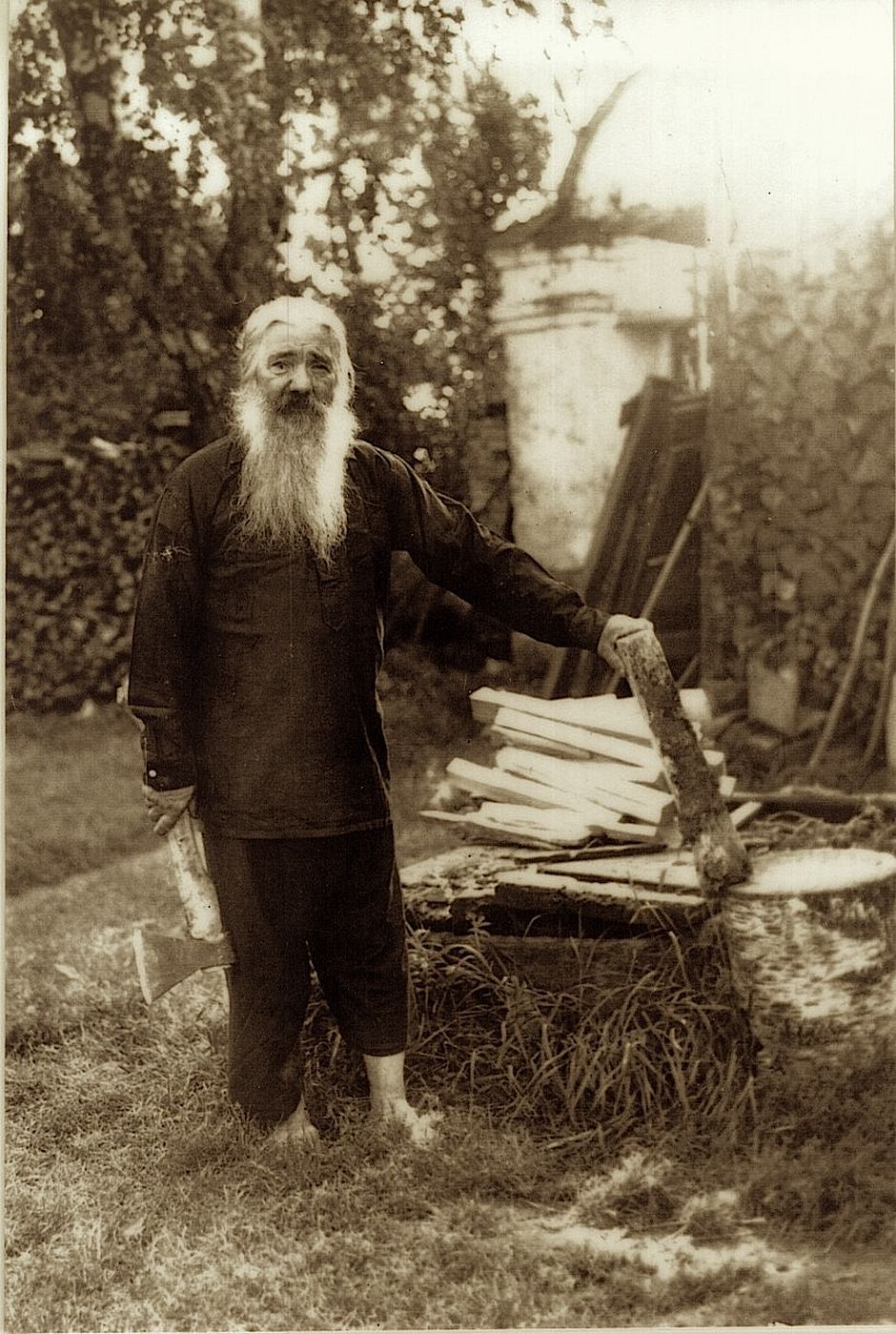 Я попросил отца Павла разрешить мне сделать его фотографию. Он, махнув рукой, сказал: «Делай, только я не знаю, куда смотреть». Марья запротестовала. Стала говорить: «Что ты, батюшка, али тебе подрясник одеть?» Он ей очень просто, по- обыденному ответил: «Молчи, дура. Нешто я без подрясника не монах? Что тут на меня смотреть? Снимай, Павелка». В этот момент я и сделал его последнюю фотографию, где он с приподнятой рукой и застывшей фразой на устах.