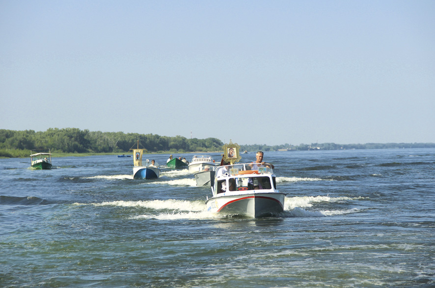 Участники традиционного крестного хода, который ежегодно проводится 26 июля в канун памяти святого равноапостольного князя Владимира и в преддверии празднования Крещения Руси. Прихожане Свято-Андреевского храма г. Маркса с хоругвями и иконами погружаются на лодки и катера и отправляются в путь по реке в Подлесное, к храму в честь Рождества Иоанна Предтечи, где совершается Божественная литургия Участники традиционного крестного хода, который ежегодно проводится 26 июля в канун памяти святого равноапостольного князя Владимира и в преддверии празднования Крещения Руси. Прихожане Свято-Андреевского храма г. Маркса с хоругвями и иконами погружаются на лодки и катера и отправляются в путь по реке в Подлесное, к храму в честь Рождества Иоанна Предтечи, где совершается Божественная литургия