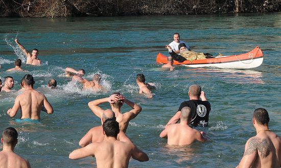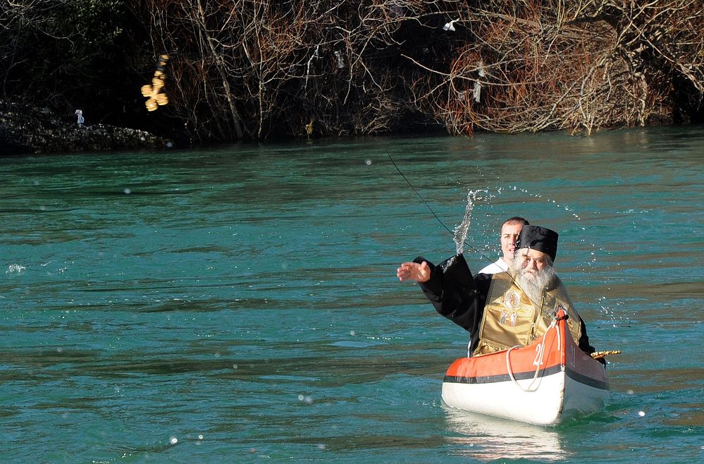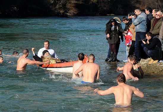 Заплыв за честным Крестом Господним прошел в устье Рибницы и Морачи, довольно опасной горной реки с сильным течением. Крест бросал митрополит Черногорско-Приморский Амфилохий.