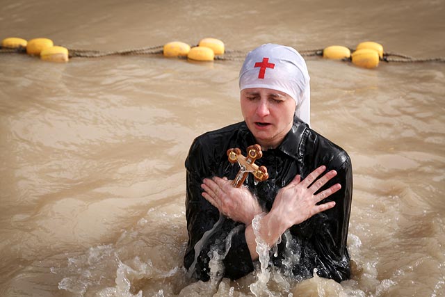 Многие в этот день последовали христианской традиции и, крестясь, многократно окунались в холодные воды зимнего Иордана. Многие паломники повезут домой бутылочки с крещенской Иорданской водой.