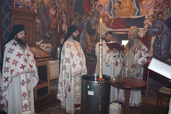 Његово Преосвештенство Епископ далматински Г. Г. Фотије служио је на празник Крштења Господа Исуса Христа (19.01.2016.) Свету Архијерејску Литургију у манастиру Крки. Том приликом Епископ Фотије традиционално је извршио освећење богојављенске воде.