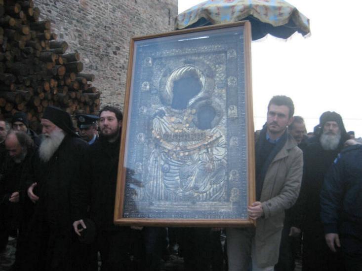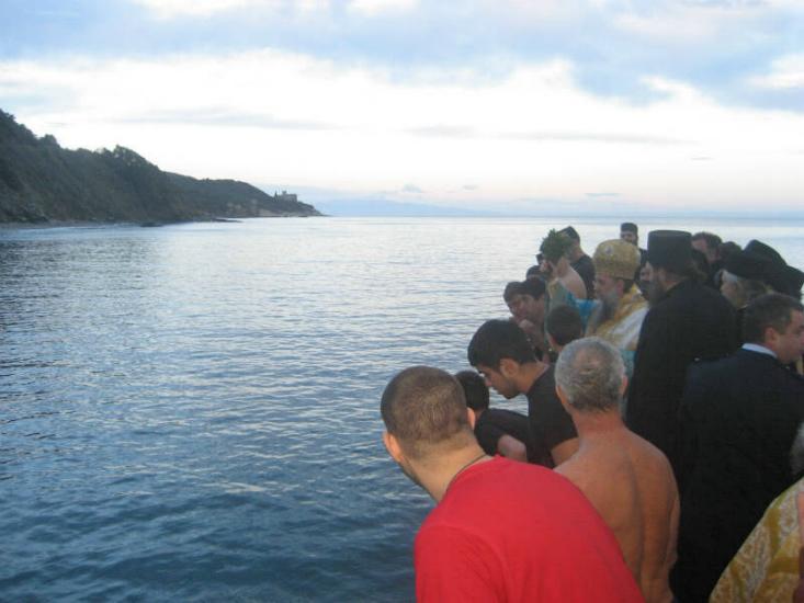 Затем с Иверской иконой Крестный ход спускается к морю.