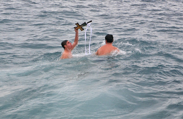 Кто достанет Крест, на праздничной трапезе получает удостоверение победителя.