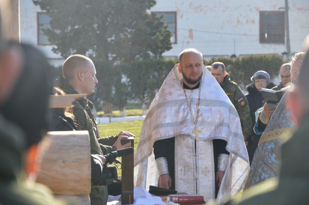 На площади возле строящегося бревенчатого храма помощник командующего Черноморским флотом протоиерей Александр Бондаренко совершил молебен перед мироточивым образом.