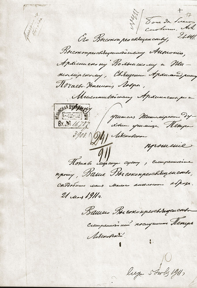 Вашего Высокопреосвященства смиреннейший послушник Петр Лясковский»[2].