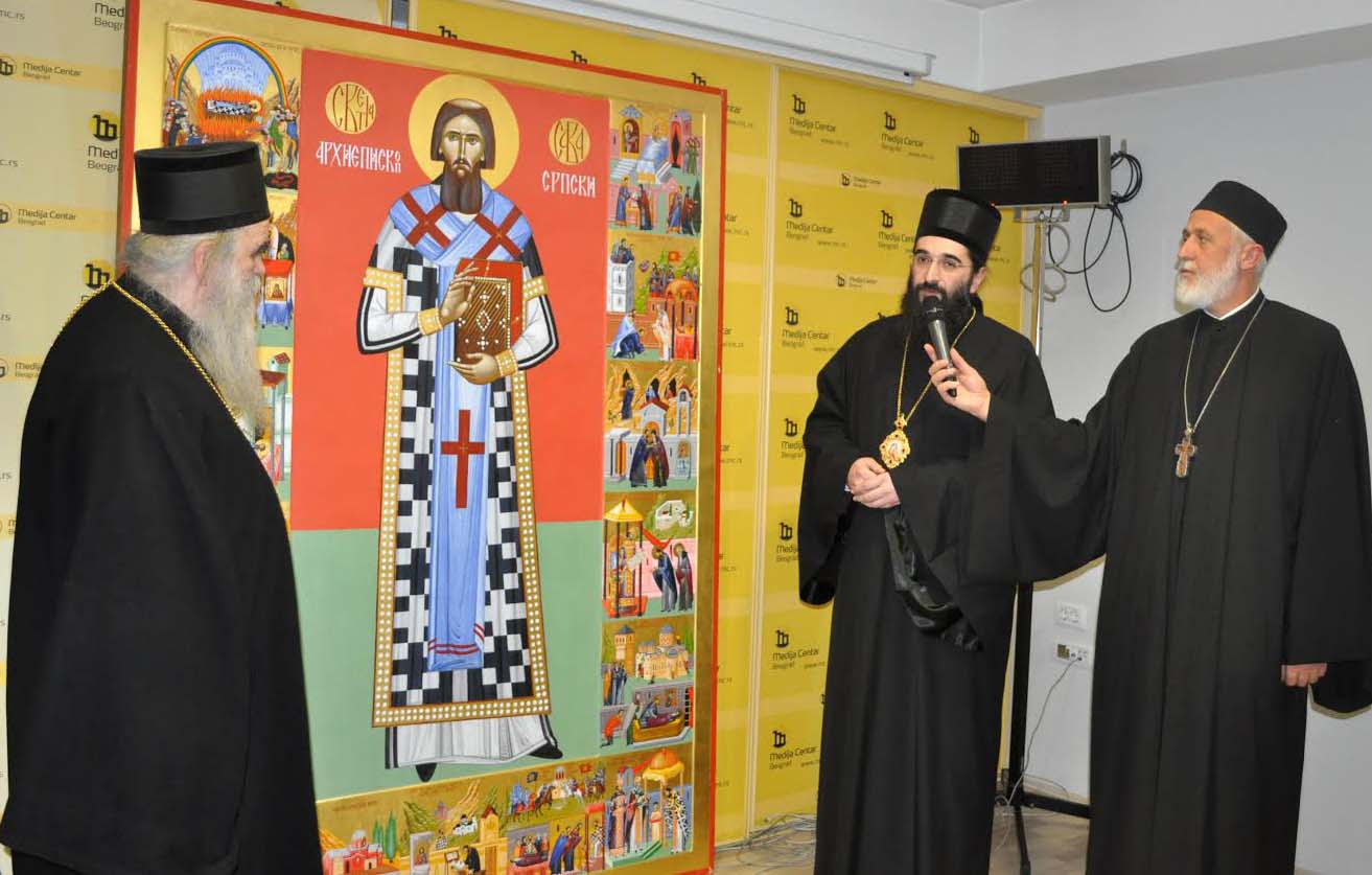 На промоцији књиге "Свети Сава Српски" у београдском Медија центру, старешини храма Светог Саве Његовом Преосвештенству Епископу топличком г. Арсенију, у име Митрополије црногорско-приморске и њене издавачке куће Светигора, митрополит Амфилохије је уручио житијну икону Светог Саве, иконописца Бориса Маркуша. -Немањићи су нас просветлили светлошћу вјечне истине, доброте и мудрости. Они су вертикала нашег историјског бића, рекао је митрополит Амфилохије. Предајући красну икону Светог Саве епископу Арсенију, Митрополит је објаснио да ће, ако Бог да, с благословом нашег Патријарха 2019. године бити освећен храм Светог Саве на Врачару, а поводом 900 година од оснивања Архиепископије жичке, и да је то био повод да се икона дарује храму Светог Саве.