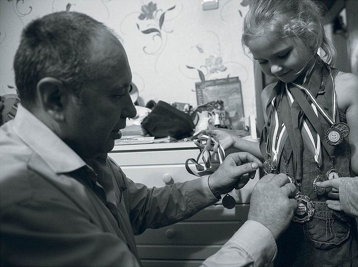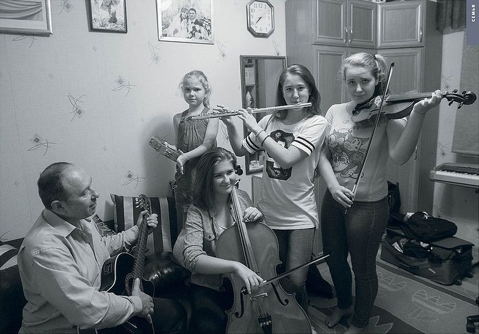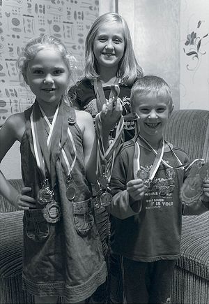 Детей мы стараемся всесторонне развивать. Когда Люба еще в садике была, она занималась гимнастикой, ездила на соревнования, привозила медали. Училась в Школе олимпийского резерва. А потом надо было выбирать между спортом и музыкой, и мы выбрали музыку. И Вера занималась гимнастикой, тоже получала медали. Две медали принес Елисей – он бегун. Дети еще просятся в художественную школу, они все рисуют хорошо, но мы не хотим их перегружать.