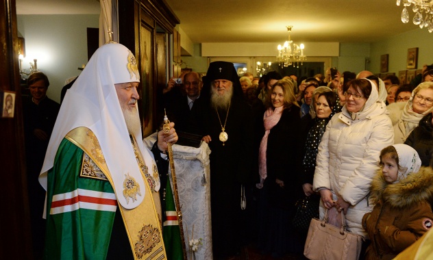 In the evening of January 24, 2016, after his work at the Synaxis of the Primates of Local Orthodox Churches, His Holiness Patriarch Kirill of Moscow and All Russia visited the Moscow Patriarchate representation to the World Council of Churches in Geneva.