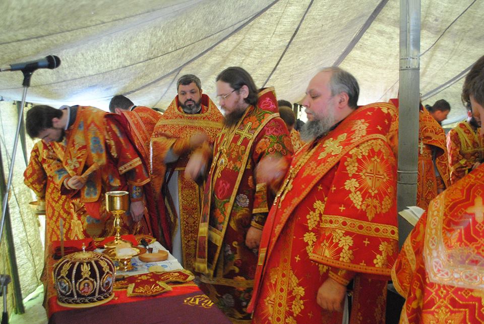 Это была необычная литургия. В палаточном храме, как во время войны, когда еще до революции 1917 г. полковые священники выезжали в места боевых действий армии, служили литургии, исповедовали солдат и офицеров перед боем, благословляли на ратный подвиг…