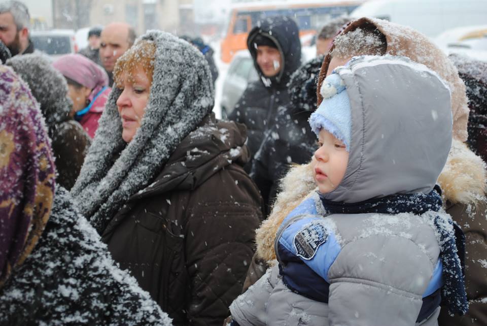 В этот день небо плакало снежным потоком. В палаточном храме топилась «буржуйка», верующие во главе с духовенством ожидали архиереев Украинской Православной Церкви – епископа Боярского Феодосия, викария Северного викариатства столицы, и епископа Васильковского Николая, которые должны были по благословению Блаженнейшего Митрополита Онуфрия возглавить богослужение в этот день.