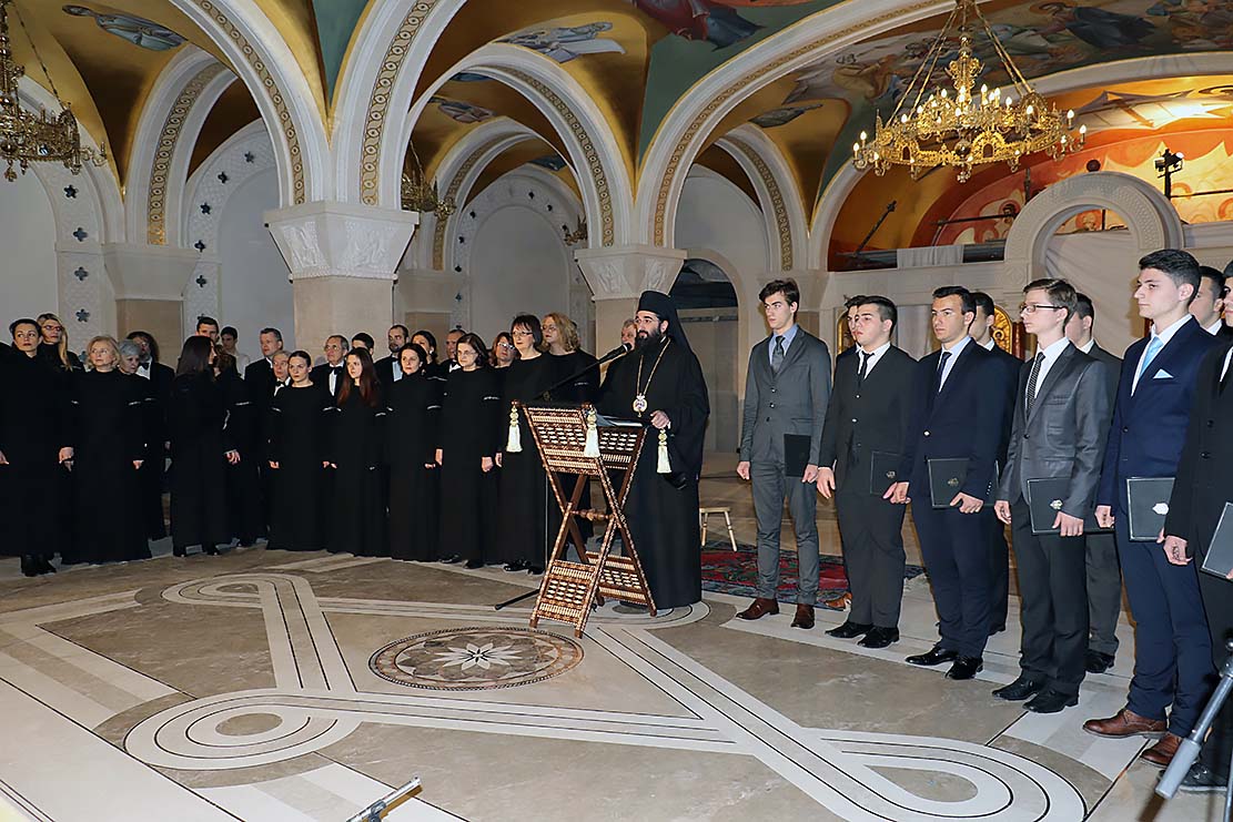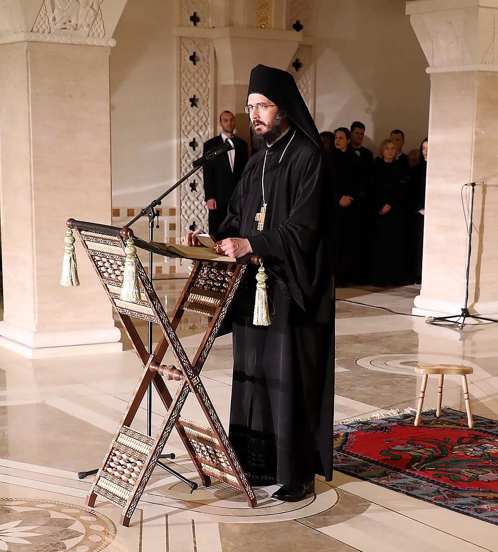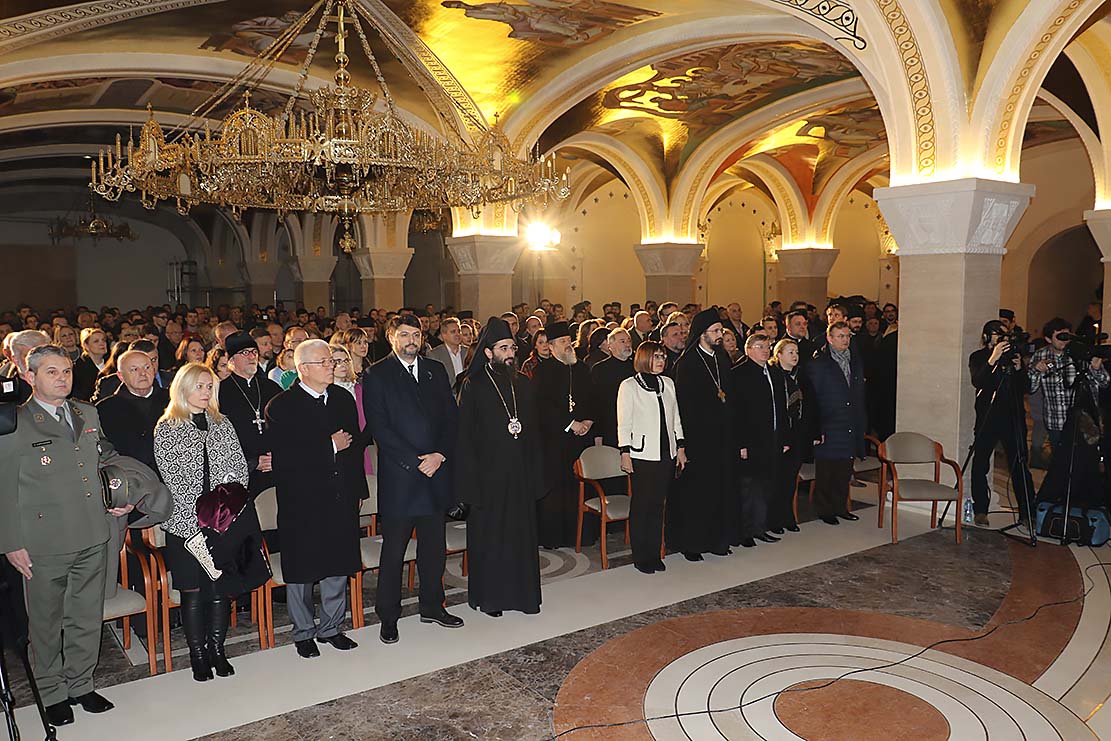 -Сабрали смо се вечерас под сводовима овог велелепног храма, који је српски народ изнедрио у знак најискреније љубави и најдубљег поштовања и захвалности према своме оцу, пастиру, учитељу и духовнику, да на достојанствен начин прославимо празник који уједињује сав српски род на свим меридијанима и чини нас да будемо једно биће.