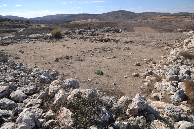 Уже в первой крепости времен Соломона, в северо-западном углу, располагался небольшой храм, который был затем восстановлен вместе с крепостью после ее разрушения Шешонком. Основную площадь храма занимает двор (12 x 7,5 м) с алтарем, по своим размерам соответствующим предписаниям закона Моисеева (2,4 x 2,2 м и высотой изначально около 1,5 м; ср. Исх 27:1; после реконструкции в кон. X в. основание старого алтаря было использовано как ступенька у нового, причем новый был сделан из необтесанного камня; ср. Исх 20:22). Слева располагалось святилище, откуда 4 ступени вели ко входу во святая святых. У входа располагались два небольших кадильных алтаря, в дальней, западной части – два священных столба (маццебот; см. фото 4).
