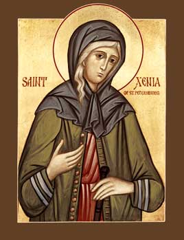 Today we commemorate Saint Xenia of St. Petersburg, Fool for Christ, who in the early 18th century in Russia became a widow when her husband, a military officer, died suddenly. A young widow with no children, she gave away all her possessions to the poor and vanished from society for several years, devoting herself to spiritual struggle in monastic settings. When she returned to St. Petersburg, she took up the life of a homeless wanderer, wearing her late husband’s military uniform and answering only to his name Andrew. She prayed alone at night in open fields, endured the extreme cold with inadequate clothing, lived among beggars, and suffered abuse from many for appearing insane. She secretly carried heavy stones at night to help with the building of a church and gave the alms she received to the poor. But she embraced her struggles with patience, abandoning pride in all its forms and praying for the soul of her departed husband. In Xenia’s humility, God gave her great gifts of prayer and prophecy, and she foretold future events such as the death of a Russian empress.