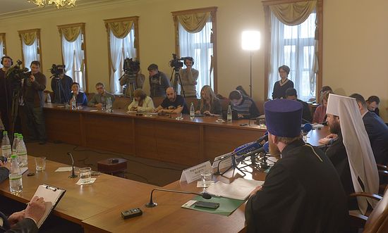 В пресс-конференции также приняли участие председатель Синодального отдела по взаимоотношениям Церкви с обществом и СМИ В.Р. Легойда и руководитель пресс-службы Патриарха Московского и всея Руси иерей Александр Волков.