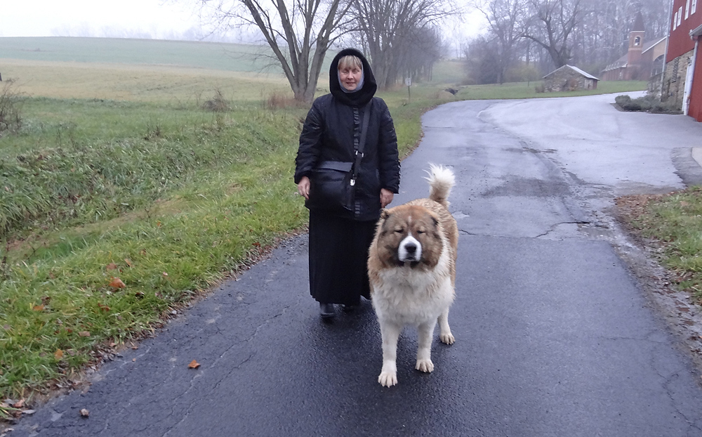 На экскурсии по монастырю меня сопровождает Лома, выпущенная для прогулки из вольера. Лома, по-грузински «Львица», очень умна, это настоящая пастушья собака, проделавшая щенком далекий путь с Кавказских гор до штата Мэриленд. Она знает всех живущих в монастыре. Быстро запоминает приезжающих паломников, и сестры всегда могут понять, когда в обители появляется посторонний по предупреждающему громкому лаю Ломы. Увидев меня второй раз в жизни, Лома уже не стала лаять: нас познакомила сестра монастыря, значит, я своя.