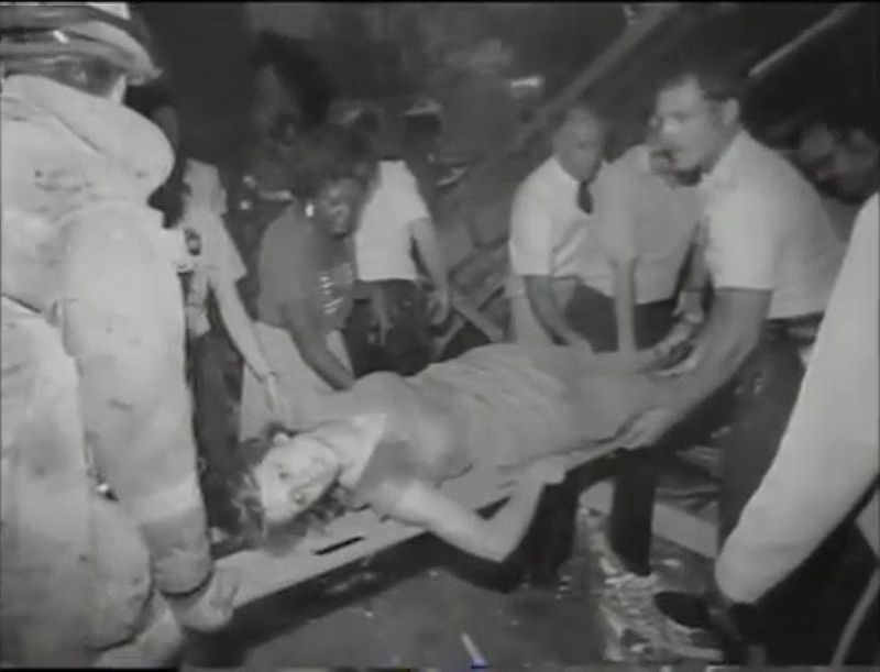К нам подошел муж моей сестры. Он не пострадал от падения галереи. Когда сестра выбралась, она посылала своего мужа ко мне, и он пытался ко мне подобраться, чтобы вытащить, – но это было невозможно.