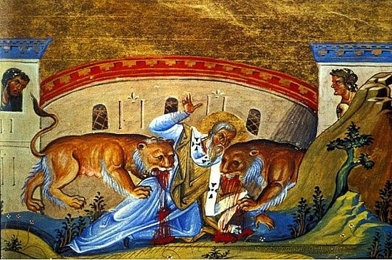 In the year 106 the emperor Trajan (98-117), after his victory over the Scythians, ordered everyone to give thanks to the pagan gods, and to put to death any Christians who refused to worship the idols. In the year 107, Trajan happened to pass through Antioch. Here they told him that Bishop Ignatius openly confessed Christ, and taught people to scorn riches, to lead a virtuous life, and preserve their virginity. St Ignatius came voluntarily before the emperor, so as to avert persecution of the Christians in Antioch. St Ignatius rejected the persistent requests of the emperor Trajan to sacrifice to the idols. The emperor then decided to send him to Rome to be thrown to the wild beasts. St Ignatius joyfully accepted the sentence imposed upon him. His readiness for martyrdom was attested to by eyewitnesses, who accompanied St Ignatius from Antioch to Rome.