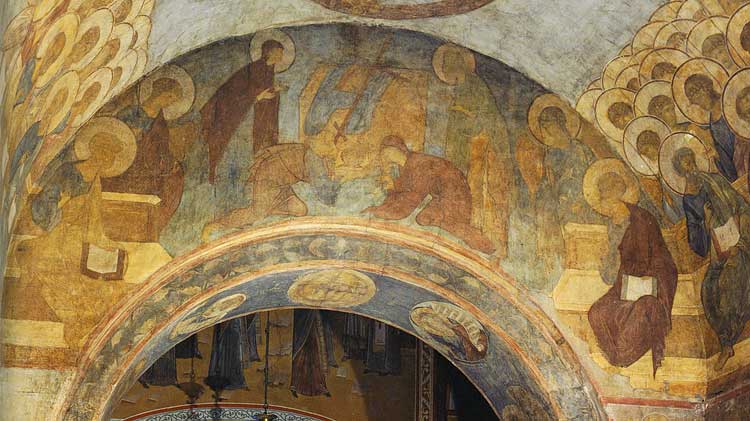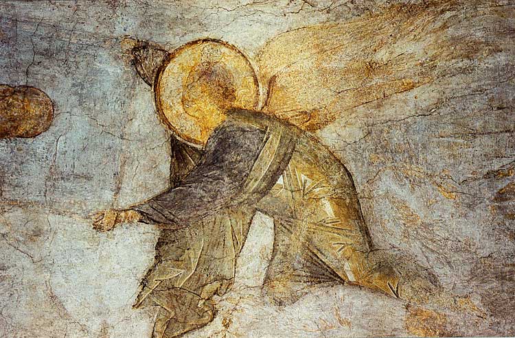Роспись Успенского собора. А. Рублев. Ангел, свивающий небеса в свиток