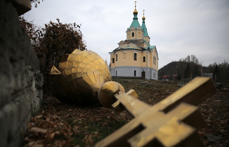 The Foreign Ministry’s commissioner for human rights, democracy and the rule of law explained that he referred to an ongoing "vicious chain of arson attacks on Orthodox churches of the Moscow Patriarchate, their seizure by force with the help of volunteer battalions, the Right Sector (radical nationalist movement) with direct connivance, and sometimes with participation of law enforcement agencies."