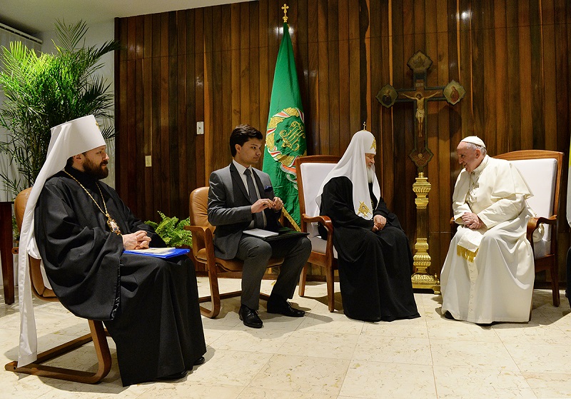 Это первая в истории встреча Предстоятелей Русской Православной Церкви и Римско-Католической Церкви.