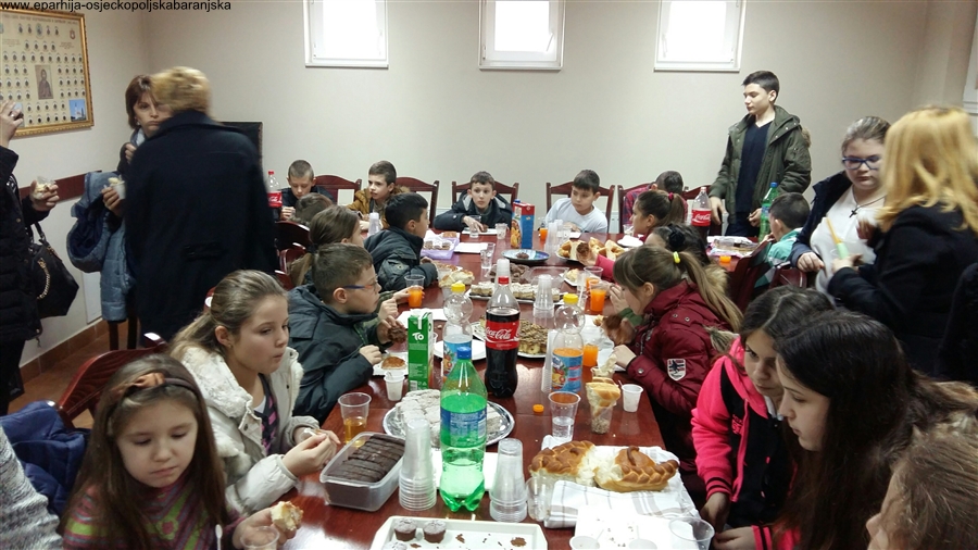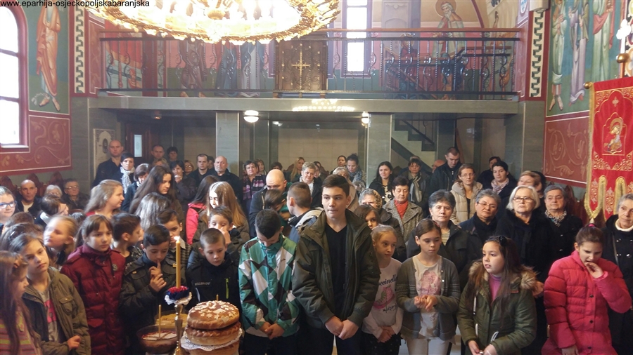 Ученици 3. и 7. разреда који у ОШ Синиша Главашевић у Борову Насељу похађају наставу на српском језику и ћириличном писму, 7. фебруара 2016. године, предвођени вероучитељем Јованом Секулићем, прославили су своју крсну славу - Светог Григорија Богослова. Славски обред је обављен у боровонасељском храму Светог краља Стефана Дечанског, након свете Литургије, коју је служио надлежни парох, протојереј - ставрофор Слободан Блажић, уз саслужење парохијског ђакона Срђана Лукића. Ово радосно сабрање настављено је у Парохијском дому, у коме су Црквена општина и родитељи ђака приредили малу трпезу љубави.