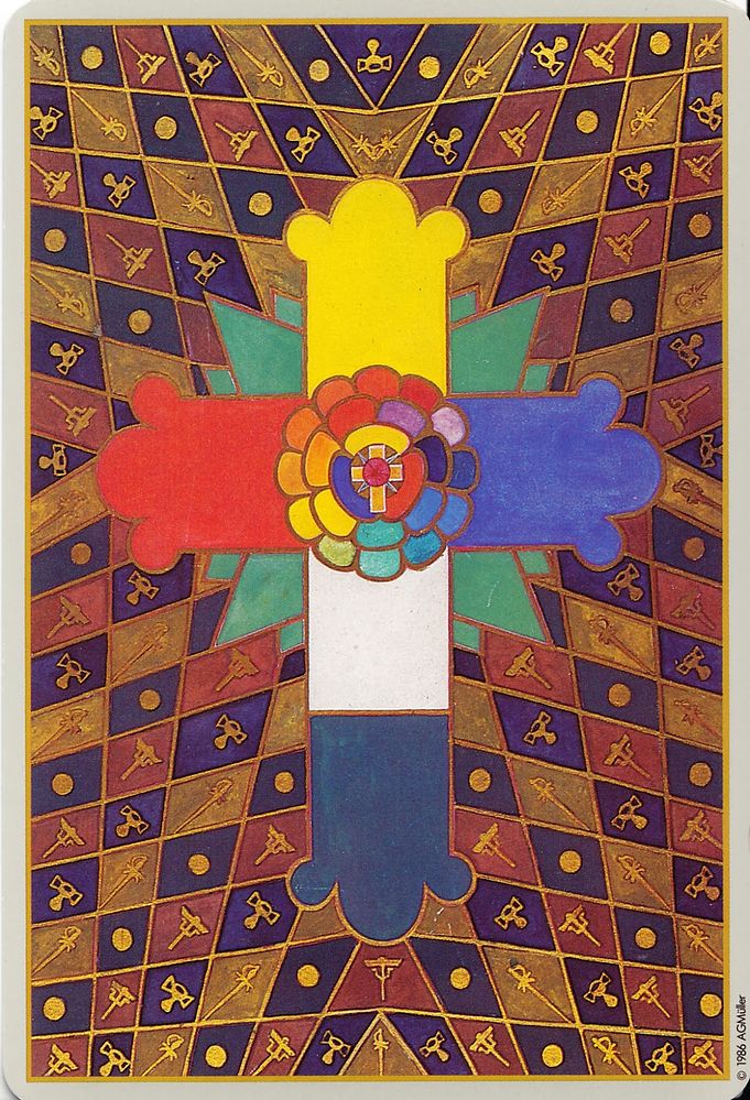 Ружа и крст «Златне зоре» - приказ на полеђини тарот-карте Тома, које је смислио сатаниста Алистер Кроули
