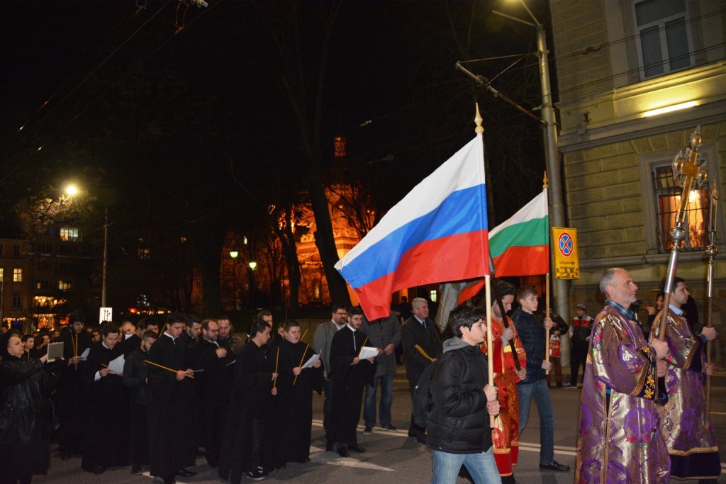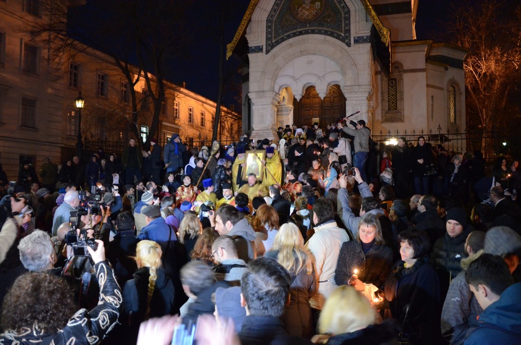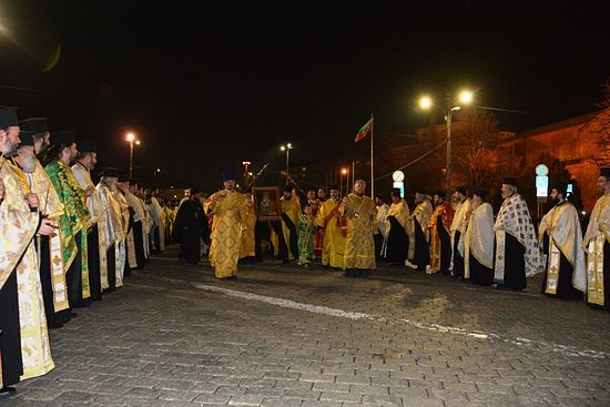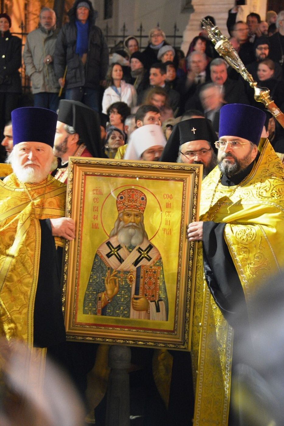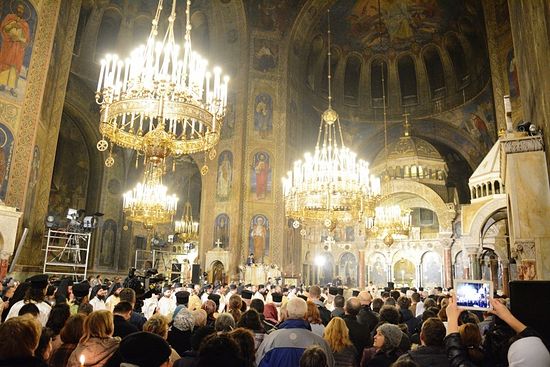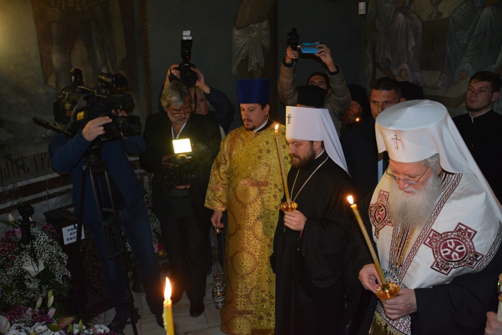 Встречей иконы новопрославленного святителя в соборе Александра Невского началось Всенощное бдение, которое возглавил митрополит Варненский и Великопреславский Иоанн. Святейший Патриарх Болгарский Неофит и члены делегации Русской Православной Церкви молились за богослужением в алтаре кафедрального собора.