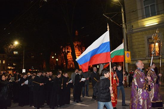 Торжества продолжились крестным ходом с иконой святителя Богучарского Серафима от Никольского храма-подворья Русской Православной Церкви в Патриарший кафедральный собор Александра Невского. В крестном ходе приняли участие: митрополит Волоколамский Иларион с членами делегации Русской Православной Церкви, митрополит Западно- и Среднеевропейский Антоний, митрополит Варненский и Великопреславский Иоанн, архимандрит Серафим (Шемятовский), духовенство Софийских храмов, воспитанники духовных школ, отряд Национальной гвардии Республики Болгарии, президентский оркестр, представители казачества, множество верующего народа.