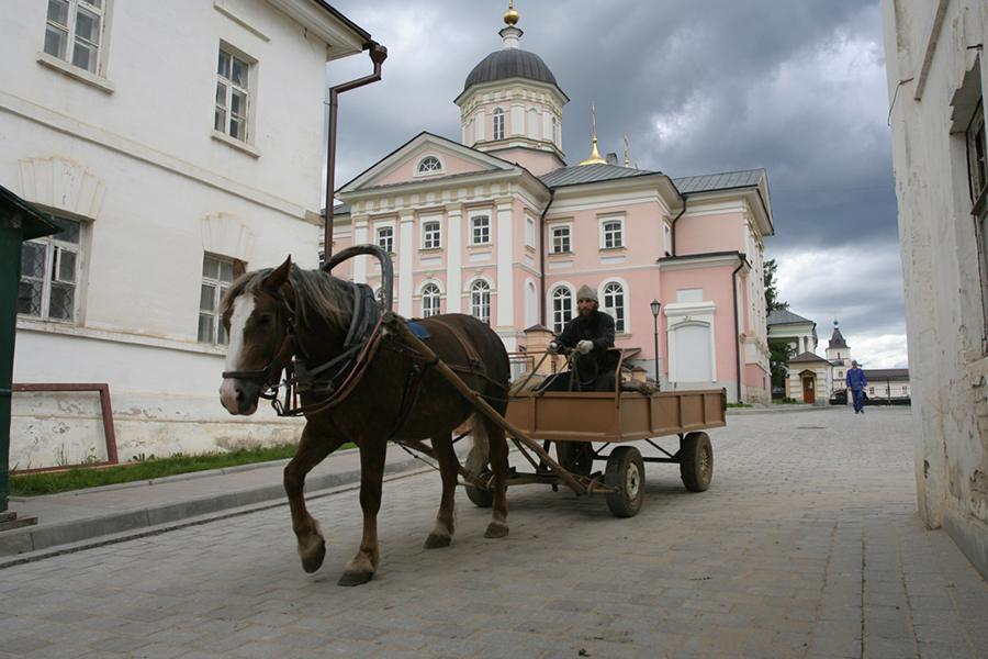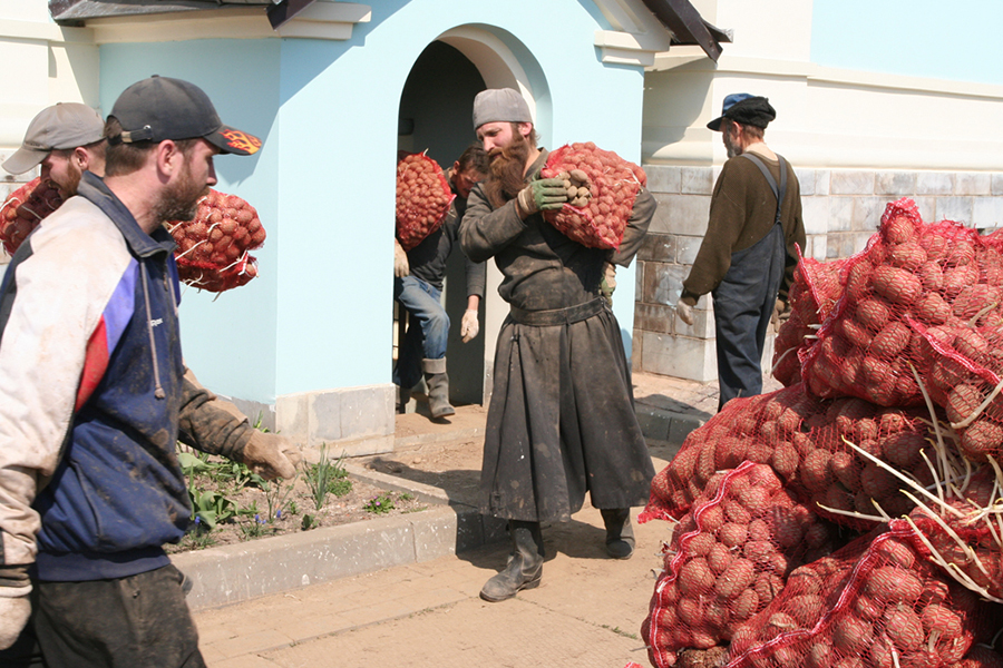 Жили и мирские люди. Вокруг обители было нагромождение различных хозяйственных построек, кладовых, птичников. Не так просто было все это расчистить. С большим трудом убеждали жителей переселиться за пределы святых врат. По монастырю вообще тогда проходила дорога, шел транспорт. Однажды владыка Евлогий перекрыл этот автопоток, чтобы у монастыря образовалась своя замкнутая территория, но жители ночью перепилили замок. Начали строить для них дом: некоторые переехали в него, другим покупали жилье. Некоторые оставались в скиту – претендуя на квартиры.