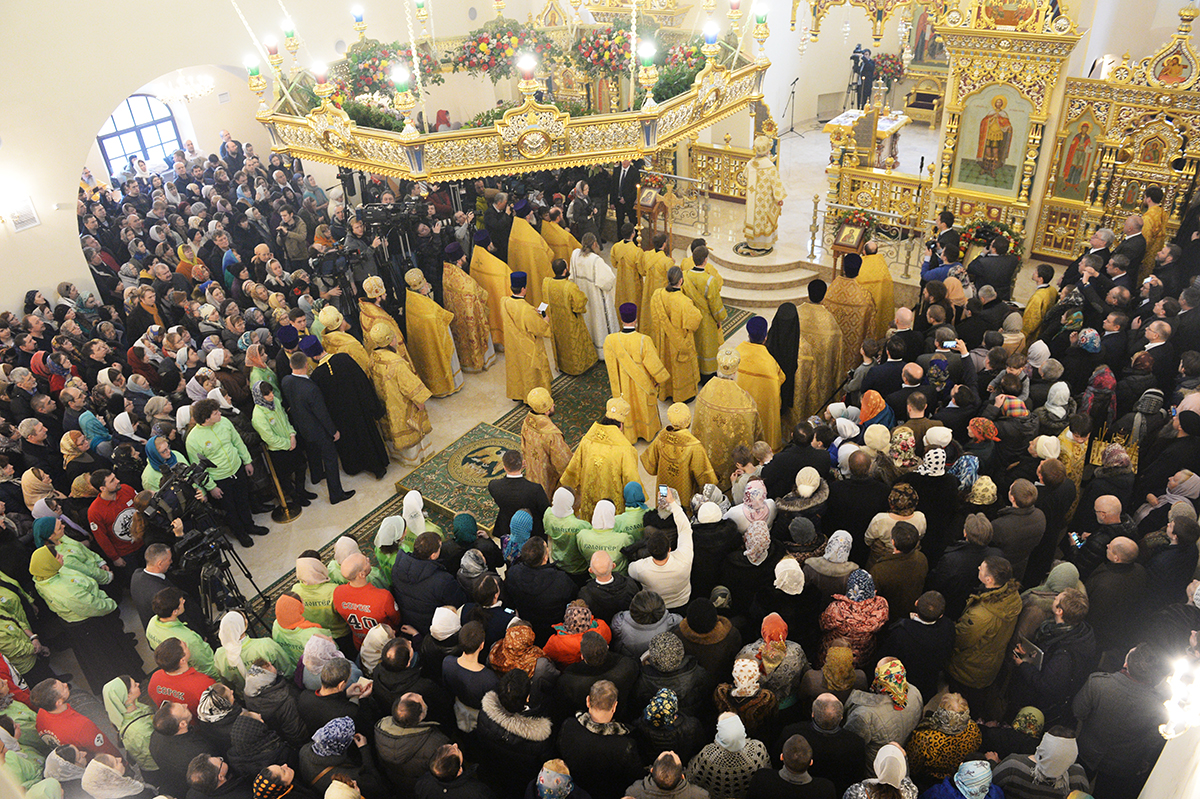 На богослужении присутствовали: Л.Э. Слуцкий, председатель Комитета Государственной Думы ФС РФ по делам Содружества Независимых Государств, евразийской интеграции и связям с соотечественниками; В.И. Ресин, депутат Государственной Думы ФС РФ, советник Патриарха Московского и всея Руси по вопросам строительства; Г.Б. Карасин, статс-секретарь, заместитель министра иностранных дел РФ; А.В. Торкунов, ректор МГИМО МИД России; А.В. Богомаз, губернатор Брянской области; А.О. Александров, префект Западного административного округа города Москвы; С.Г. Малышев, вице-президент ГМК «Норильский никель».