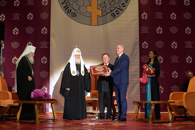 9 марта 2016 года в Зале церковных соборов кафедрального соборного Храма Христа Спасителя в Москве Святейший Патриарх Московский и всея Руси Кирилл возглавил XVI ежегодную церемонию вручения премий имени Патриарха Алексия II Международного общественного фонда единства православных народов «За выдающуюся деятельность по укреплению единства православных народов. За утверждение и продвижение христианских ценностей в жизни общества» за 2015 год.