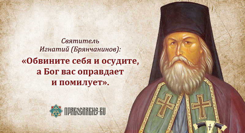 «Укоряйте себя, укоряйте свое немощное произволение... В обвинении себя найдете утешение. Обвините себя и осудите себя, а Бог вас оправдает и помилует» (Святитель Игнатий (Брянчанинов)).