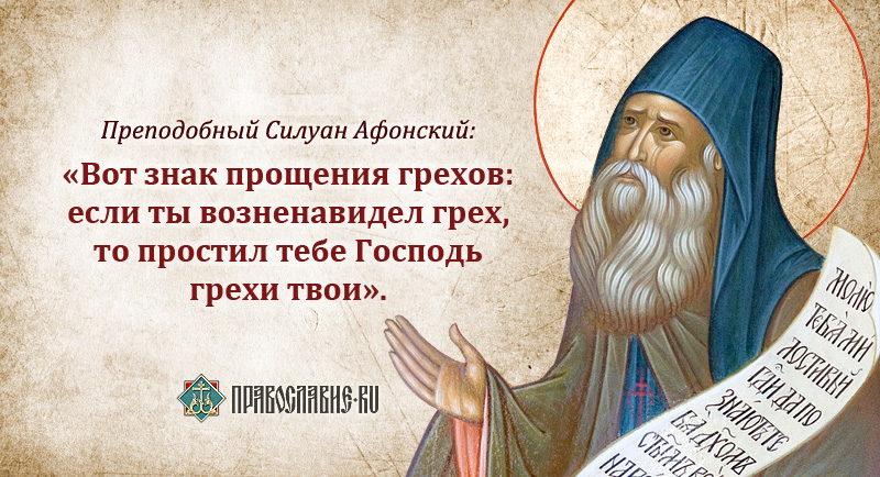 «Вот знак прощения грехов: если ты возненавидел грех, то простил тебе Господь грехи твои» (Преподобный Силуан Афонский).