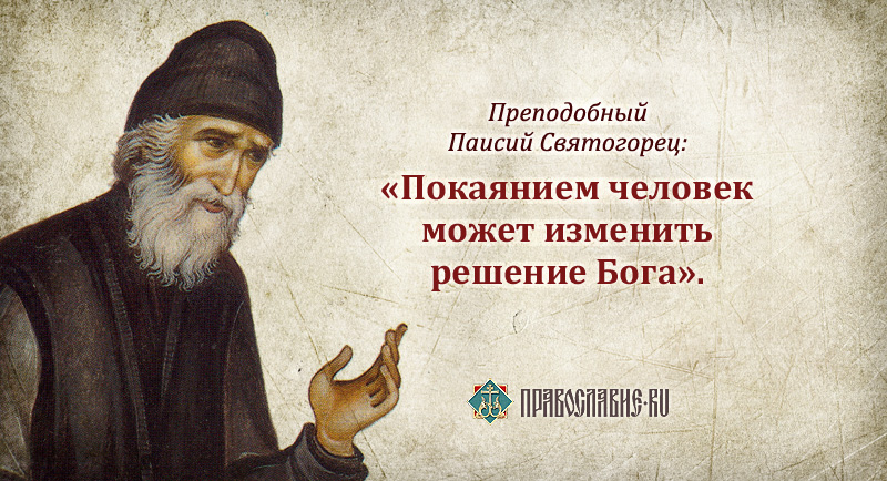 «Покаяние – это великое дело. Мы еще не осознали, что покаянием человек может изменить решение Бога. То, что у человека есть такая сила, – это не шутка» (Преподобный Паисий Святогорец).
