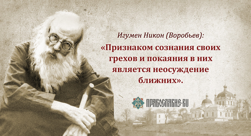 «Признаком сознания своих грехов и покаяния в них является неосуждение ближних» (Игумен Никон (Воробьев).