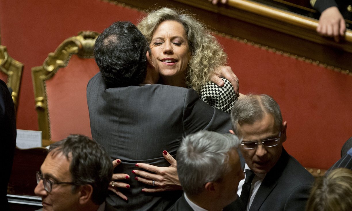 Сенатор Моника Цирина обнимает коллегу после того, как законопроект был принят Сенатом . Фото: Alessandra Tarantino/AP
