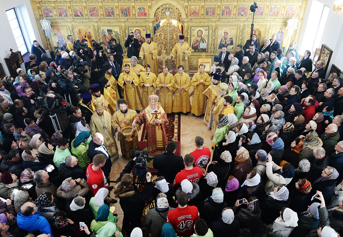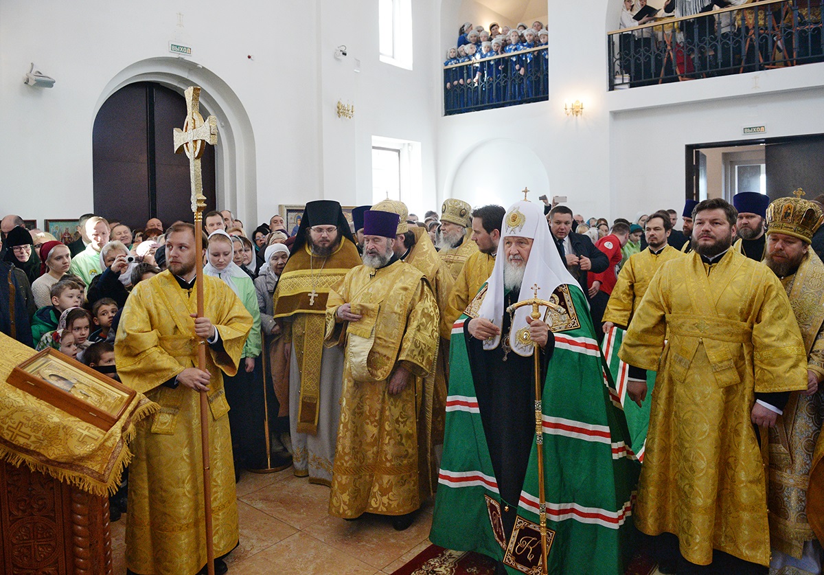 13 марта 2016 года, в Неделю сыропустную (Прощеное воскресенье), воспоминание Адамова изгнания, Святейший Патриарх Московский и всея Руси Кирилл совершил чин великого освящения храма священномученика Ермогена, Патриарха Московского и всея Руси, — Патриаршего подворья в Крылатском г. Москвы и Божественную литургию в новоосвященном храме, сообщает Патриархия.ru.