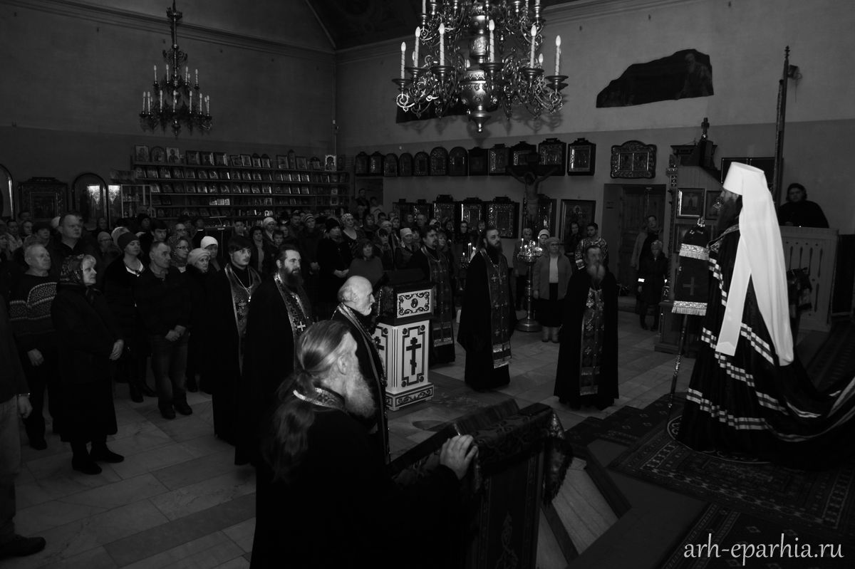 Митрополит Архангельский и Холмогорский Даниил вечером 15 марта совершил великое повечерие с чтением Великого покаянного канона преподобного Андрея Критского в Никольском храме столицы Поморья, сообщает пресс-служба Архангельской епархии.