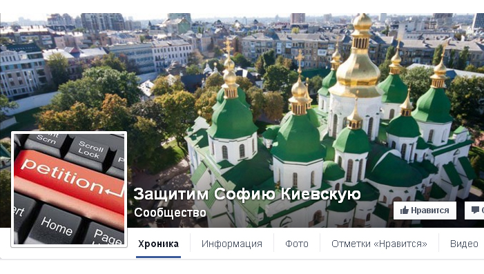 В социальной сети Facebook создано сообщество «Защитим Софию Киевскую». Авторы инициативы выступают в поддержку петиции к П.Порошенко «О недопущении передачи памятника архитектуры национального значения – Трапезной (Малой Софии) Национального заповедника «София Киевская» в пользование УПЦ КП», сообщает «Православная жизнь».