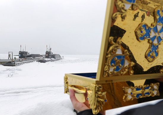 По пирсовой зоне базы был совершен крестный ход со святыми мощами. Также были освящены места базирования подводных крейсеров, сообщает пресс-служба Восточного военного округа.