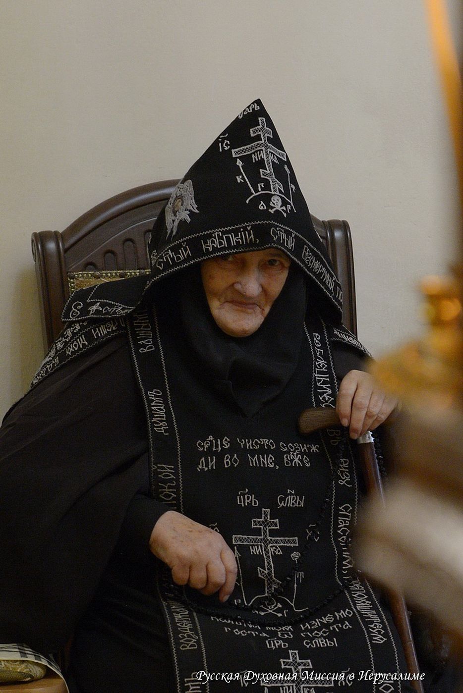 По окончании богослужения архимандрит Александр передал настоятельнице поздравление Предстоятеля Русской Православной Церкви Святейшего Патриарха Московского и всея Руси Кирилла, который в связи со знаменательной датой служения Церкви Христовой удостоил ее ордена св. Евфросинии Московской (1-й степени).