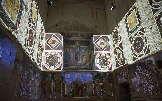Из-за землетрясения эта церковь была засыпана камнями в 847 году по Р. Х. и после этого вновь обнаружена только в 1900 году во время археологических раскопок. Более 30 последних лет понадобилось на восстановление ее изысканного интерьера, украшенного многоцветными фресками с изображением святых, мучеников, ангелов и императоров.