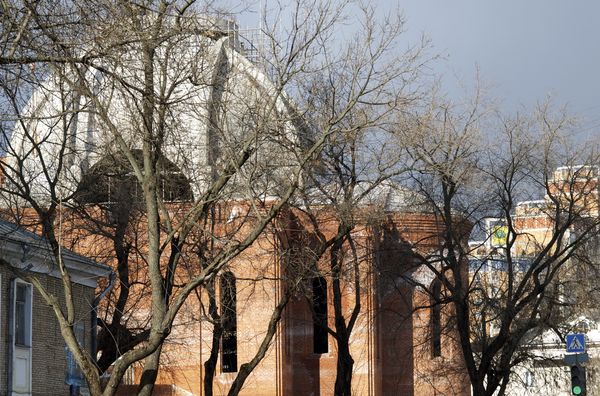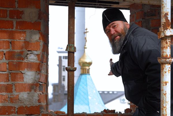 — У меня рабочих столько, скольким могу заплатить, — объясняет настоятель храма протоиерей Андрей Галухин. — Сейчас три монолитчика и четыре каменщика. Чтоб под крышу подвести, надо 30 миллионов рублей, а всего на строительство собираем 150 миллионов.
