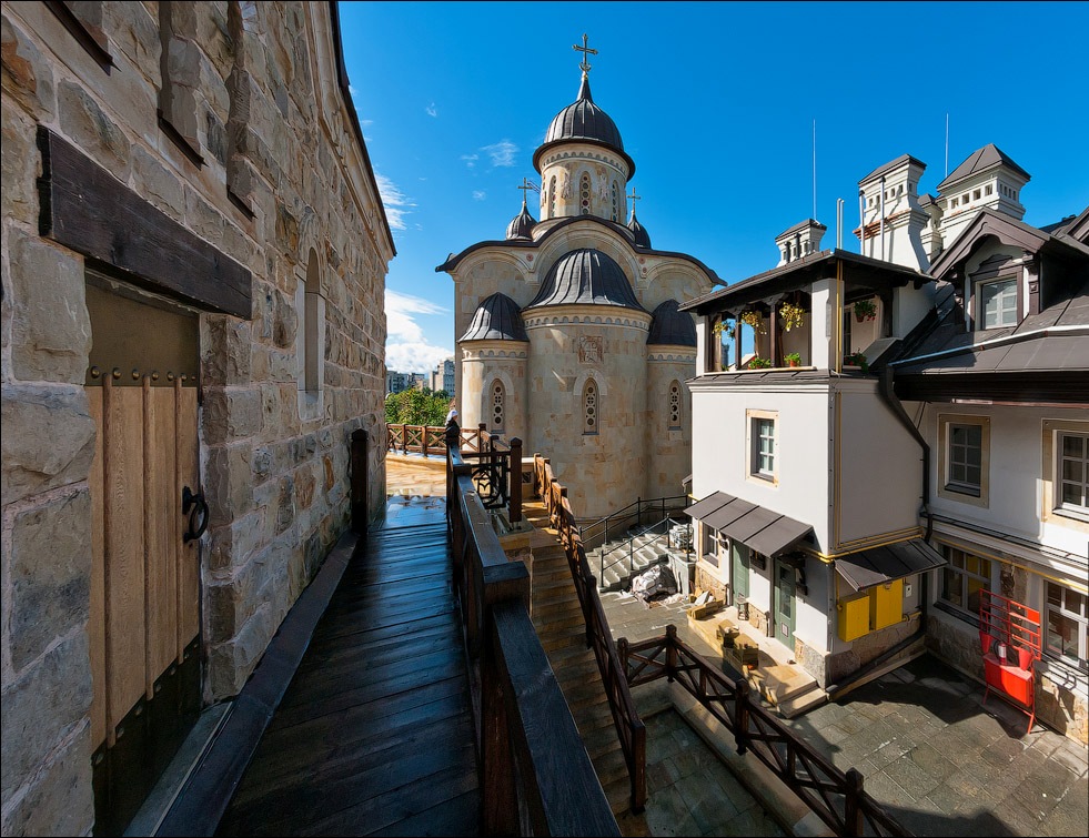 Надпещерный храм в честь всех преподобных Зверинецких, построенный в византийском стиле. Центральный вход.
